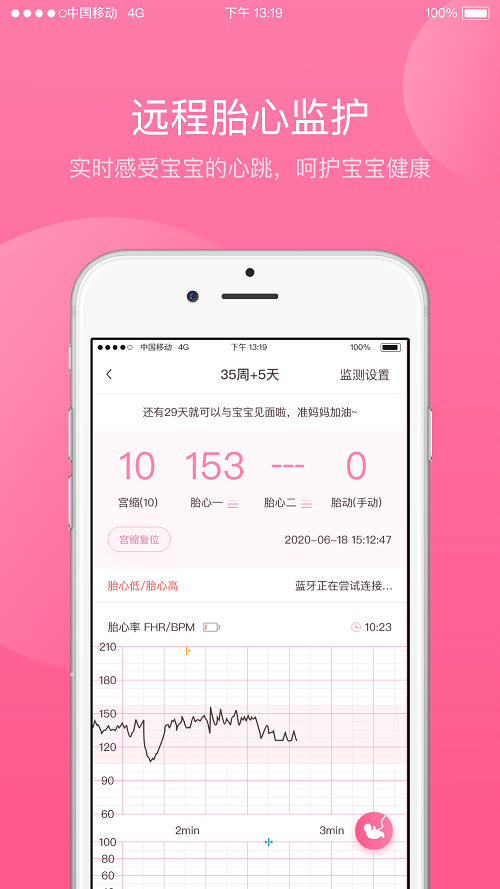 1、遠程胎心監護:在家里進行遠程胎心監護,胎心曲線實時傳輸到醫院,由醫院醫生幫助分析診斷,感覺把醫院帶回家一樣。