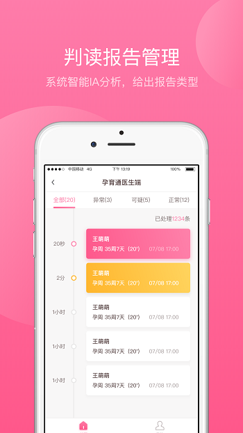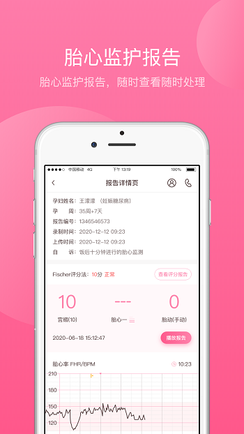 1、遠程胎心監護系統,用于孕中晚期胎心監測。孕婦通過APP提交監護報告后,醫生可在手機端查看監護報告、提交判讀結果。系統會自動分析孕婦的胎監報告,為醫生提供報告判讀的參考數據。
